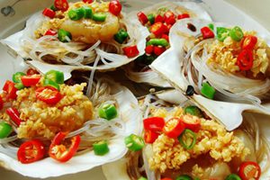 Las pechugas de mar se cocinan al vapor con jengibre, cebolleta, champiñones, jamón y brotes de bambú. Las vieiras coloridas son un plato de marisco local, donde la clara de huevo se hace en forma de copo de nieve para abrazar zanahoria y pimiento picante y las verduras de temporada. Córtalos en trozos pequeños como decoraciones en la parte superior. Las vieiras tienen una sabor fresco y ligero al vapor, comiendo con habas, chalotas, vino y salsas.